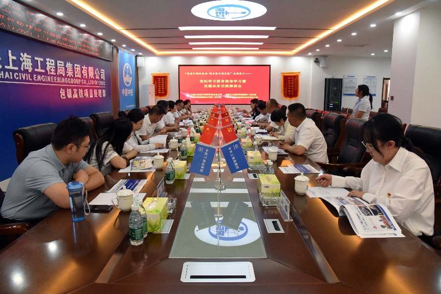 在承建單位中鐵上海局包銀高鐵1標(biāo)指揮部集體學(xué)習(xí)《嚴(yán)明黨的紀(jì)律,習(xí)近平這樣強調(diào)》等黨紀(jì)學(xué)習(xí)教育內(nèi)容,并圍繞黨建、業(yè)務(wù)工作進(jìn)行現(xiàn)場交流。中鐵上海局包銀高鐵工程項目經(jīng)理部介紹了項目建設(shè)及黨建工作開展情況。