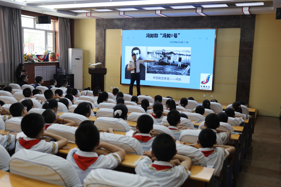60分鐘的航空知識講座,由天驕航空夏冰機長為同學(xué)們深入淺出的講解了航空歷史、飛機構(gòu)造、飛行原理等,空勤人員詳細(xì)介紹了自己的職業(yè)特點并為學(xué)生們展示了氧氣面罩、救生衣、安全帶的正確使用方法。講座寓教于樂、深入淺出、啟發(fā)互動,內(nèi)容精彩紛呈,孩子們也踴躍發(fā)言,主動學(xué)習(xí)航空知識。每一名參加活動的天驕人用愛與責(zé)任帶動現(xiàn)場的孩子們,在感受航空飛行魅力的同時,努力激發(fā)孩子們崇尚科學(xué)、翱翔藍(lán)天的熱情與向往,幫助孩子們從小樹立報效祖國、建設(shè)家鄉(xiāng)的“航空夢”“大飛機夢”和“中國夢”。
