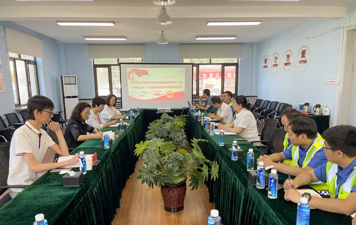7月9日上午,為深入推進(jìn)黨史學(xué)習(xí)教育,積極開展“我為群眾辦實(shí)事”實(shí)踐活動(dòng),內(nèi)蒙古自治區(qū)財(cái)貿(mào)輕紡農(nóng)牧林水工會(huì)副主席劉潔一行與內(nèi)蒙古交通投資集團(tuán)工會(huì)副主席許曉紅一行組成慰問組,冒著酷暑高溫赴天驕航空有限公司,向高溫天氣仍奮戰(zhàn)在生產(chǎn)一線的維修工程部職工開展主題為“致敬勞動(dòng)·夏送清涼”慰問活動(dòng),送去精心準(zhǔn)備的防暑降溫慰問品。天驕航空副總裁盧東哲、工會(huì)主席周雪松、維修副總裁魏鵬等領(lǐng)導(dǎo)陪同慰問。