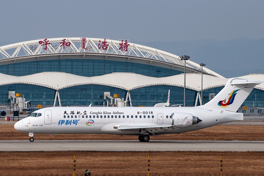 天驕航空首架ARJ21飛機到達呼和浩特白塔國際機場。