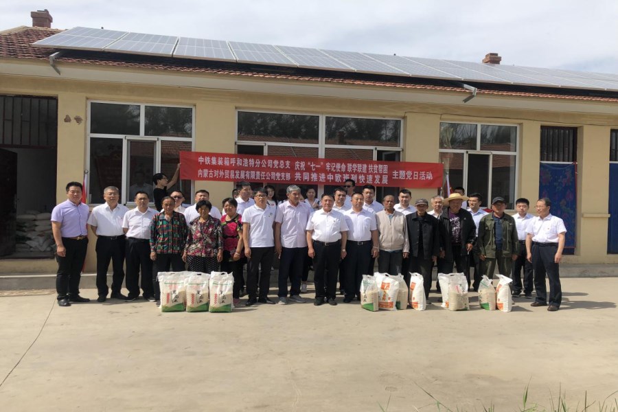 下午,內(nèi)蒙古對(duì)外貿(mào)易發(fā)展有限責(zé)任公司攜手中鐵集裝箱呼和分公司所有人員共同前往內(nèi)蒙古交通投資(集團(tuán))有限責(zé)任公司烏蘭察布涼城縣對(duì)口幫扶單位金星村進(jìn)行扶貧慰問(wèn)。在炎炎夏日,員工自發(fā)捐款,為金星村村民送上一份暖心之禮,活動(dòng)中,村支書代表貧困村民對(duì)大家的關(guān)心也表達(dá)了最誠(chéng)摯的謝意。此次主題黨日活動(dòng)及扶貧慰問(wèn)工作圓滿成功。